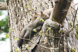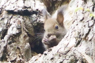 エゾリス エゾリス(子を持ち天空で木から木へ)