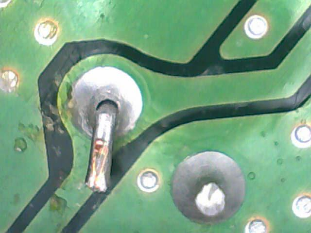 - 拡大鏡で確認基盤に隙間が見えた、拡大鏡でも老眼鏡を外してもよく見えない。限界か?パソコンにファイバー機能でミリ単位で拡大、経年劣化でしょうか、半田やせを発見、半田を施し終了。