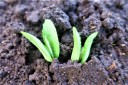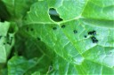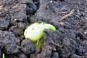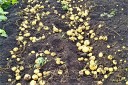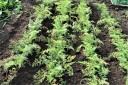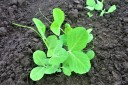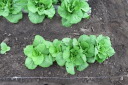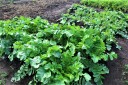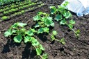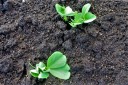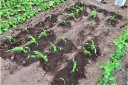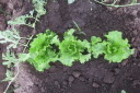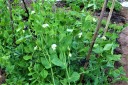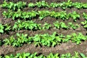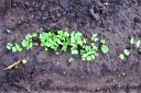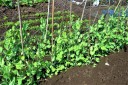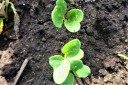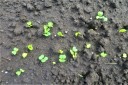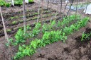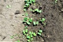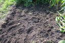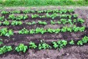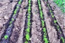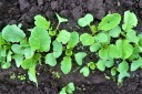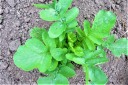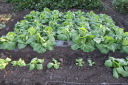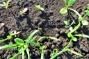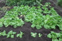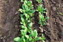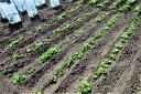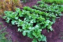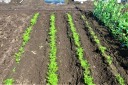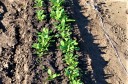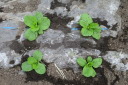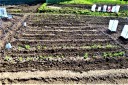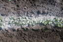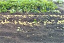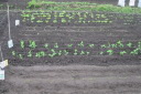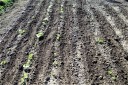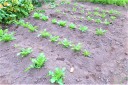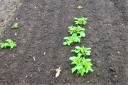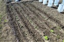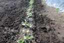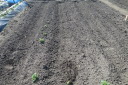 菜園は、豆類は発芽し、ジャガイモはパラパラです。ラデッシュは早くも虫食いが出始めましたので、防虫の観点から石灰を散らしました。