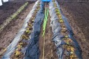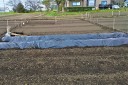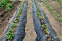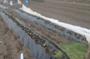 雨と低温が続き例年より遅く使用許可がおり、早速ジャガイモ植えなどし、サツマイモの畝のマルチをかけました。
