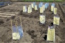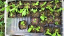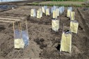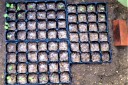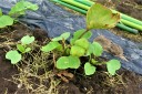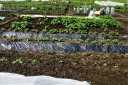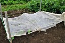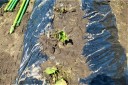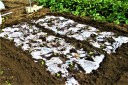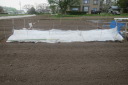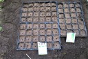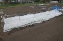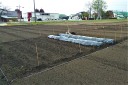 例年になく低温が続いているので、芋ズルを保温するため、ビニルで覆いを施しました。朝は、6度以下。苗をポットで育てるため種を蒔きました。
