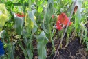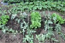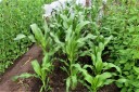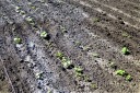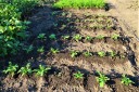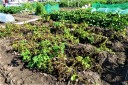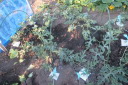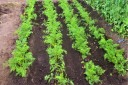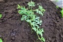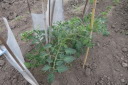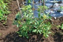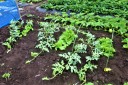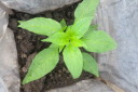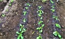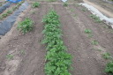 植えてから2週間、ジャガイモ・とうきび・大豆・トラ豆・ニンジン・スナックエンドウは少し芽をだし、苗ものは5日で定着した様です。植えてから、適度な雨が降り水やりすることなく生育しています。 植えた直後日差しを避けるため紙で覆いを行っていましたが今日直射を当てるため外しました。サツマイモは例年、地上に出た葉は枯れているのですが、今年はそれほど枯れていません。