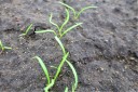 連日、風強く日照りが強かったことから苗枯れを心配しビニール覆いを外しました。今後雨の予報のため土地に潤いを行うため不織布も外しました。5月8日に蒔いたラデッシュが2枚葉まで生育しました。遠くの山には雪がのこり晴天の青とのコントラストが良かった。