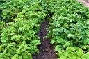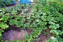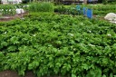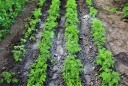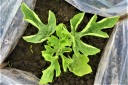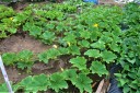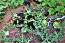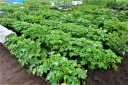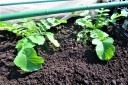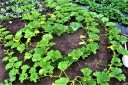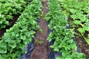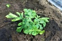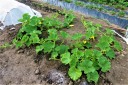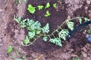 連日雨の日が続き、土壌は湿潤で気温も低下の状況でジャガイモの生育が不揃いで、いまだ芽を出していないものもある。スイカの葉は、少し丸まっている状況で、低温のせいでしょうか。