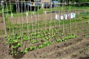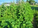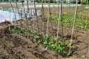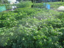 6月に入ると雨が降らない毎日、2回ほど水やりを行いました。野菜も随分成長していますが、ジャガイモだけが相変わらず一律に揃っていない。風が強いので南風の風よけをつけ、ズッキーニ、トマト、かぼちゃの囲いを外しました。ピーマン、なす、かぼちゃ、しし唐の摘心を行いました。ラデッシュは2回目を収穫、サツマイモは昨年より成長が良いようです。