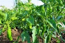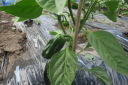 連日の猛暑で菜園はからからの状態、水を撒いても焼け石に水。スナップエンドウは花がなくさやもパンパンになったことからすべて収穫し撤去、ピーマンは、猛暑の影響でしょうか、実の下のほうが黒く傷みかけ、なすびは苗自体がか細くなってきています。スイカは徐々に大きく、個数も増えています。
