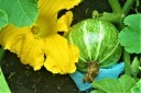 最近は日照りが続き、雨が欲しいところですが、菜園は順調です。スイカは前日の写真〈7月14日)と今日のと比較では2センチ成長したことになります。また、他の雌花も順調に受粉されているようです。ズッキーニ、トマト、なすび、シシトウ、レタスを収穫しました。