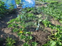 1週間ぶりの菜園。16日と比較するため同一の写真配置としました。スイカ、ジャガイモの成長が少し気にかかります。今日の予報は曇り、しばらく雨が降ってないので水やりを行いましたが数時間後短時間ではありましたが雨が降りむだ足となったのか。