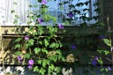 菜園も様変わり、ジャガイモ、キャベツ、スイカをすべて収穫しましたが、ジャガイモは天候の影響でしょうか例年なく減収でした。ジャガイモの収穫後そこに白菜を移植しました。先週移植した大根はすべて定植したことから不織布を撤去し今日移植した苗に施しました。例年より移植が遅かったことから地温を上げるため、今回は透明なマルチを施しました。先週蒔いたホウレン草は芽を出し、アサガオは去年以上に花をつけています。