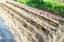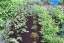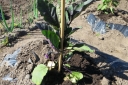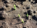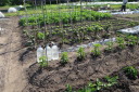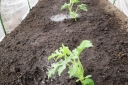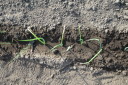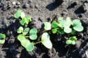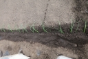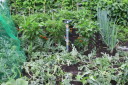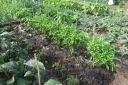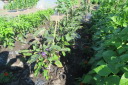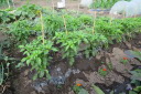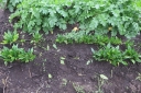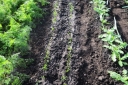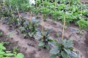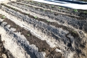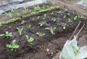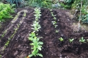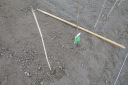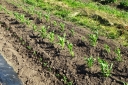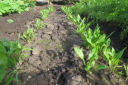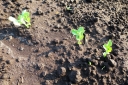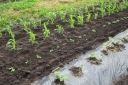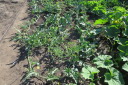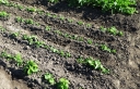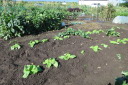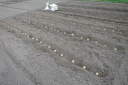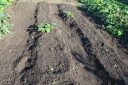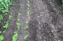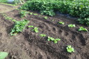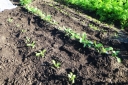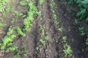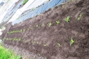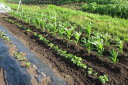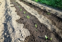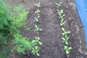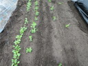 種を蒔いたものは18日目では不揃いではあるが多少芽がでました。撒いてからほとんど雨が降らず種のふくらみがなかったためと思いますが、とうきびは1列が出そろっています。苗ものは植えてから6日経ちますが枯れたものはなかった。今だニンジン、黒豆は芽が出ていない。