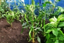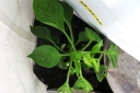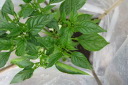 苗が伸びたところから摘芯(キュウリは根から5節まですべて取り除き、茄子は一番花の直下2節を残し根までの節を取り除き、スイカは根から5葉で摘心、ピーマン、しし唐は一番花以下(枝の別れ目)の節をすべて取り除き)しました。かぼちゃもスイカ同様に行いますが、そこまで成長していないので静観。