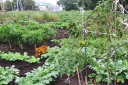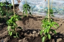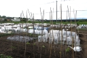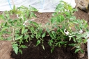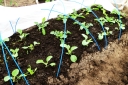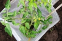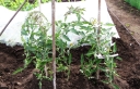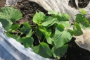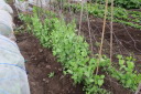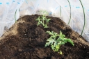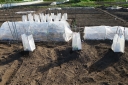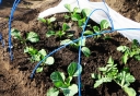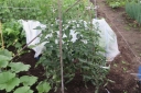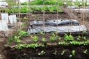 キャベツ、白菜、大根、レタスの苗は移植し虫よけのため不織布で養生。スナックエンドウ、トラ豆に手を付け、トマト、カボチャは背丈が伸びたので風よけビニールを取り外しました。