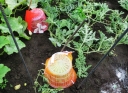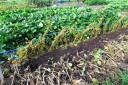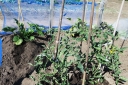 1週間前の写真と比較すると今時期の気温、水分で随分生育したかが伺えます。それに伴って昆虫の活動も活発化し蜂の受粉を期待しつつ、葉等を食い荒らす虫を駆除したいものです。ズッキーニ、ピーマン、大根を収穫し、天候は曇りでしたがスイカの人工授粉を行いました。サツマイモが何本か根が出ず枯れたため、始めて伸びたサツマイモの枝を切り植えました。どのように育つかわ不明ですがもし成功すれば、今後のサツマイモの購入時期等の参考になります。