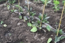 前回の菜園から4日経過しましたが随分生育したように見えます。風よけビニルを取り外しました。夕方遅くに雨の予報で乾燥した菜園には良い雨となります。