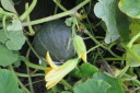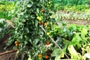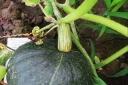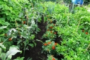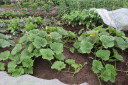 6日前と今日の状況は一変、スイカ、カボチャは数も増え、球の大きさも一段と大きく、なすび、シシトウ、キュウリは数多く収穫できた、苗から挿し木したサツマイモの芋つるは、1月異なると成長度合いが変わっています。虫よけに植えたマリーゴールは花が咲き威力を発揮しているでしょうか。