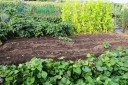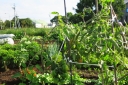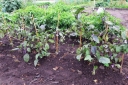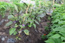 晴天が続き蜂が飛んでいることから人工授粉から蜂にお任せ。なすび、ピーマン、大根を収穫、これからは菜園に訪れる度数種類収穫して帰れそうです。サツマイモの芋つるは枯れることなく順調で、ジャガイモは畝が見えなくなるほど育っています。今年はこれまで23種類の野菜を育てており、トマトは、大玉、フルーツ、ミニの3種類でラデッシュは収穫を終えています。