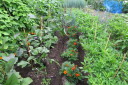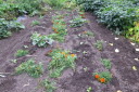 雨の後菜園は生き生きしていて土の香りもあります。ジャガイモの倍土を行いスイカのつるが伸びる様トンネルの下部を開け1番花を摘みました。また、虫よけにマリーゴールを植えました。かぼちゃもつるが伸びたので摘芯しました。サツマイモが数本枯れたことから他の場所から移植