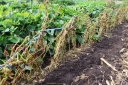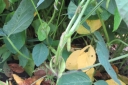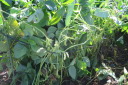 先日の風雨でトラ豆、とうきび、大豆が倒れかけていたことから起して支柱を添える作業を行いスナックエンドウの跡地を耕しホウレン草、大根、白菜の直播を行った。また、サツマイモのつる返しをして、ペーパーポットに白菜と大根を植えた。大豆も少しさやがつき始めました。