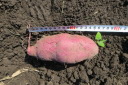 暴風を伴う台風11号が過ぎた。風で白菜の葉が折れ、大豆も倒れていた。ネギをすべて収穫。シルクスイーツ植えてから120日、試験掘りで見えた芋1本を収穫(16cm、350g)した。