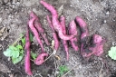 例年になく気温が20度を超え暖かい日。6月に植えたサツマイモをすべて収穫。これまで収穫したものと合わせると紅あずま、安納芋、紅はるか、鳴門金時の順であった。鳴門金時の成績が悪いのは4本活着が悪かったせいと考えられる。 栽培が難しいとされる安納芋は意外と収穫量が多かった。安納芋だけ垂直植えしたため本数は少ないが大きいものが収穫できた。ピーマン、しし唐は終了。白菜を2個を収穫。芋ずるは短く裁断し畑に散らしました。畑を均しているとミミズが多数おり、話では畑が肥えると聞いているが時と場合の様である。