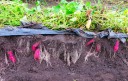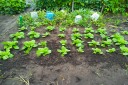 大根をすべて収穫しました。晴天が続き菜園も乾燥しています、生育はほぼ良好ですが、カボチャ、スイカは少し遅れています。サツマイモは、左が紅はるか、中央が鳴門金時、右が若干遅れているシルクスイーツです。スイカの横に植えたレタスは少し巻き始めました。スナックエンドウが2輪花を咲きました。生育が悪いサツマイモ2本を今年の苗から出た茎で補植しました。今日苺狩りを実施。