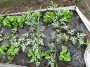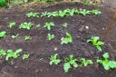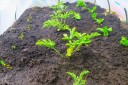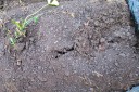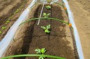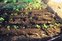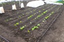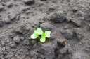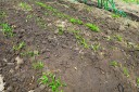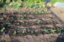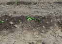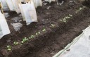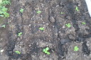 豆類を植え1週間、気温が低かったので発芽状況を確認、ラデッシュは数本2枚葉を付けトウキビ、トラ豆はマルチをしたものは多少芽が膨らんでいました。花の種は一率2枚葉を付けました。