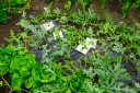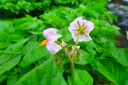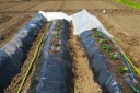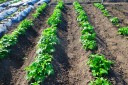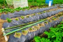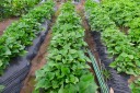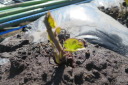 雨上がりの朝今後高温が予想されることからスイカのビニルを外しました。その代わり黒マルチを行い、今日また雨の予報なので追肥を行いました。トマトの脇枝は1週間で根を出しましたのでポットに移し替えました。ジャガイモは数個花が咲きました。