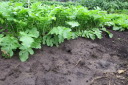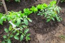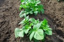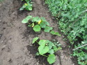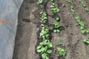 ジャガイモが一通り出そろったので培土を行い、苗もの直射を避ける囲いを外しました。スイカは1本当初から弱まっており、枯れたので苗を取り替えました。サツマイモは紅はるか、鳴門金時苗はほとんどが根を付けましたがシルクスイーツは苗は元気だったのですが天候の状態でしょうか葉は数本枯れました。ただ、新芽が出始めたので生育は遅れますが十分育つと考えられます。ペットボトルにレタスの種を植え7日目で双葉がでたのでぺーバーポットに移しました。ニンジン、ホウレン草は種が多かったのでバラマキしたところ大変な状況となり間引きが大変です。