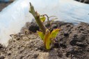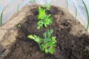 気温が上昇したことからサツマイモを植えました。品種は紅あずま、鳴門金時で鳴門金時の苗の方が育ちも良く茎もしっかりしていました。他の豆類は少し芽が出始めました。(前日の最低気温は4度)