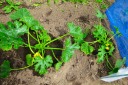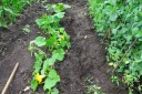 乾燥した菜園に少しばかりの雨がふりました。ズッキーニは順調に生育し昨年を上回る収穫です。スイカの茎はまだ細いですが、つるを伸ばし始めました。ジャガイモの花は終わり、スナックエンドウの花が次々と花をつけています。週末にかけ雨の予報のため、追肥を行い、帰りにはズッキーニと少し小ぶりなピーマン(茎を大きくするため)を収穫しました。