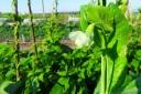 先週から雨が降り1週間ぶりの菜園、ジャガイモの成長が著しくもう少しで花が咲きそうです。他のものも順調ですが、スイカの葉がやはり内側に丸まっており昨年より生育が遅れています。トラ豆、スナックエンドウに手をつけ、スイカの摘心を残り1つ実施、ズッキーニはビニルからはみ出していたので外し、ジャガイモに少し追肥を行いました。心配したシルクスイーツはほとんど根を付けました。ラデッシュを2回に分けすべて収穫しました。