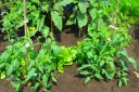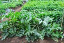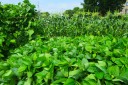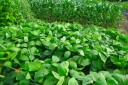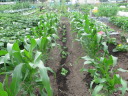 左からトラ豆で奥が黒豆、トウキビ、ジャガイモ、ネギ・ニンジン・ホウレン草、大根の順