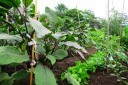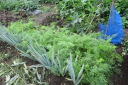 種等を蒔いてから2か月、先週十分な雨で菜園も潤い順調に育っています。スイカも弦を伸ばし狭間に植えたレタスも大きくなりました。キュウリ、スイカのつる、なすびの整枝を行い、少し膨らんだスナックエンドウとキュウリの初収穫しましたニンジンが大きくなってきたので間引きしました。