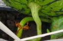 ズッキーニは昨年より多く収穫があったが残り1本のため実がつかなくなったので抜いて終了。スイカは6個収穫したが更に5個実をつけているがいくつ収穫できるかは不明。