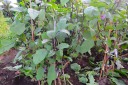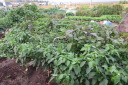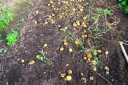 連日の雨で菜園では相当雨が流れた跡があり土壌は水分が多め。トラ豆は季節外れで花が咲いています。秋野菜は訪れる都度大きくなっており、なすび、ピーマンも数は多くないが収穫できています。サツマイモは2株掘り写真左が昨年のつるからとれたもので、今年購入したつるよりも大きく太さが概ね揃っています。昨年つるは6個で2.3Kgです。今年は猛暑のせいか収穫量は期待できそうです。
