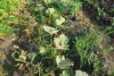 大根、白菜は順調に生育し枯れた苗はありませんが、じのみで葉が相当食べられているので防除実施