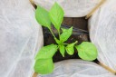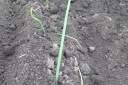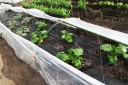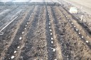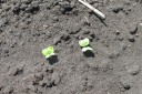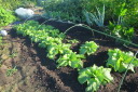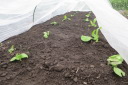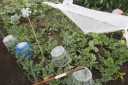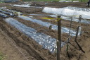 気温が上がった18日に苗もの、19日にはトンネル内にスイカ、カボチャ、メロンは植え付けました。4日に植えたジャガイモ及び種を蒔いたスナックエンドウ等は芽を出しました。苗ものは直射日光を遮るため百均購入した遮光ネットを張りました。