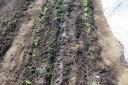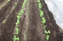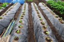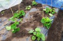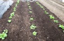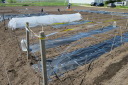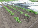 種類の発芽を促進するためマルチをかけ、苗ものの床造りのミニビニールハウスを作りました。3月に種で植えたかぼちゃ、メロンも生育し,はつかかぶは芽を出しジャガイモも成長しているのでしょう地割れが生じています。天気が良いせいか多くの人が菜園を訪れ作業しています。