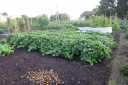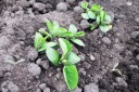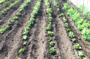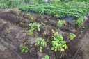 苗もの、種ものが出そろったことから全体を搭載、ジャガイモに培土をかけました。