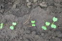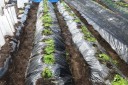 天候が回復し晴天。10日マルチをかけたが芽が出たので撤去。とうきび、黒豆、スナックエンドウは一斉にでてマルチのため芽が白い。
