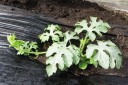 種を蒔いた日から1月半、苗を植えてから1月が経過しました。サツマイモはすべて根が付きましたが、トマトは根元から折れました。他の株から子を取り根を出させて今日ポット植えを行い、サツマイモはマルチの穴を6個多く開けたので根づいた苗から切り取りポット植えを行い、スイカ、カボチャ、メロンは孫枝の整理を行いました。