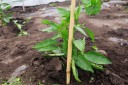 数日間低温が続きやっと平年が予想されることからサツマイモを購入してから3日ほど水(液体肥料混ぜた混合液)につけ根出しを行い植えました。スナックエンドウ、トラ豆は生育したことから根曲がり竹(手)を付けました。