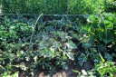 晴天が続き乾燥し硬くなっております。鳥獣から守るため、とうきびにはネットをスイカにはかごを設置しました。   28日には白菜・大根を蒔きました。植える場所はジャガイモの収穫後のため苗まではポット栽培。