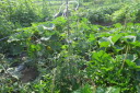 今季最高の気温が予想されることから覆いビニールを外しました。かぼちゃの数本の摘心を実施、昨日のゲリラ降雨で水分も十分。サツマイモシルクスイーツはすべて定着しました。