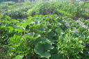 7月28日蒔いた白菜を菜園に移植しました。大根は、空いた隙間を利用し直播カボチャはもう少しで収穫