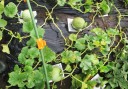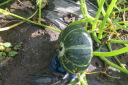 ジャガイモの葉は少し枯れ始め、黒豆は花をつけカボチャ、メロン、スイカの玉が大きくなり始めました。