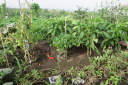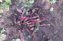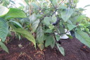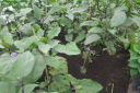 連日の降雨で土壌とサツマイモの生育状況を確認するため、植えてから90日と収穫には早いが1株の試験掘りを実施。概ね20cmのサツマイモであったが土壌の水分は過多であった。白菜の葉は虫が付いていることから防除を実施。ナスは順調に収穫だが、ピーマンは収穫が減少、小さな実はついているので今後期待。