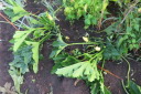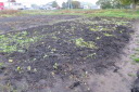 7月29日大量の雨が降り水分は十分となりました。28日種を蒔いた白菜が芽を出し、今日試験掘りしたジャガイモの後に白菜を直播しました。スイカ、メロン、カボチャは順調、サツマイモが平年に比べまだ畝幅が見える状況ですジャガイモは例年より早く茎が枯れ何時でも収穫可能となりましたがまだ早いですね。