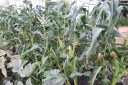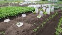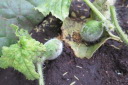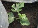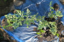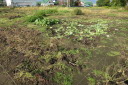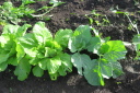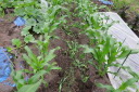 | 今日までの収穫ズッキーニ5本,スナップエンドウ多数を収穫今日の土壌は先週から雨らしい雨は降っていいない。土壌も多少乾ききっているがそれほどではない。持参した水40リットルは、主に、スイカ、かぼちゃに給水。 葉物は、防虫対策として、石灰を散布、散布前に相当の葉、芽が食べられたものがありました。 |