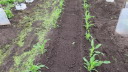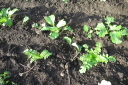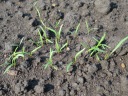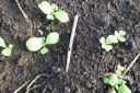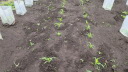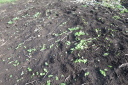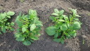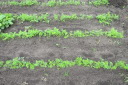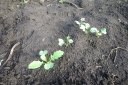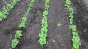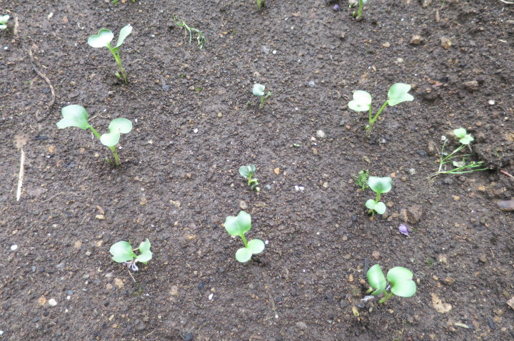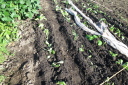 | ジャガイモはまだ芽を出さず土を押し上げ、とうきび、えんどうは1センチ程度、はつかかぶは4枚葉が出そろっています。 | |||||||||